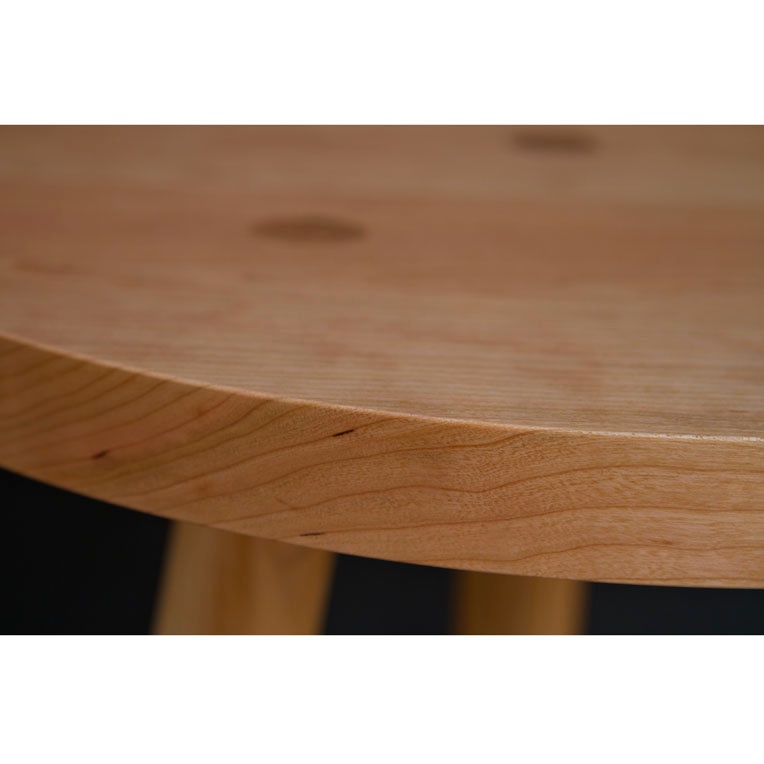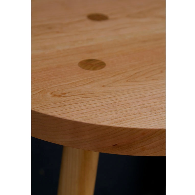 A simple round sidetable, with hand turned legs which are joined through the table top with a wedged mortice and tenon.