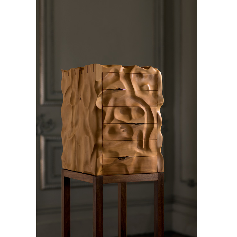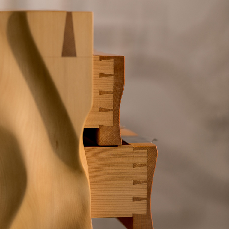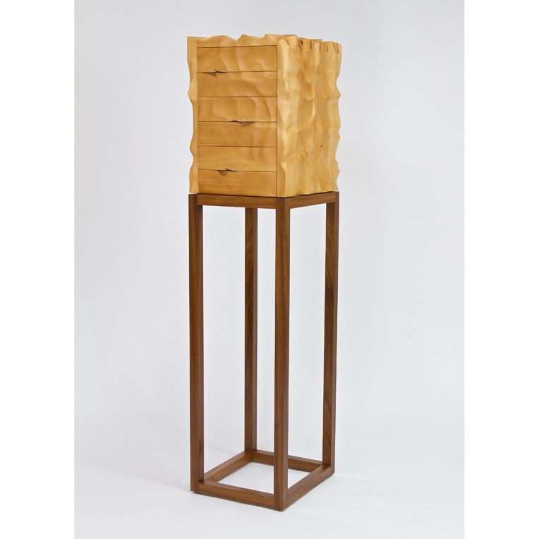 “I imagine it as a block of gold or honeycomb sitting on a stand, with hidden drawers. It’s a dovetailed box and I’ve actually cut into those dovetails at the top, so you can see inside them.